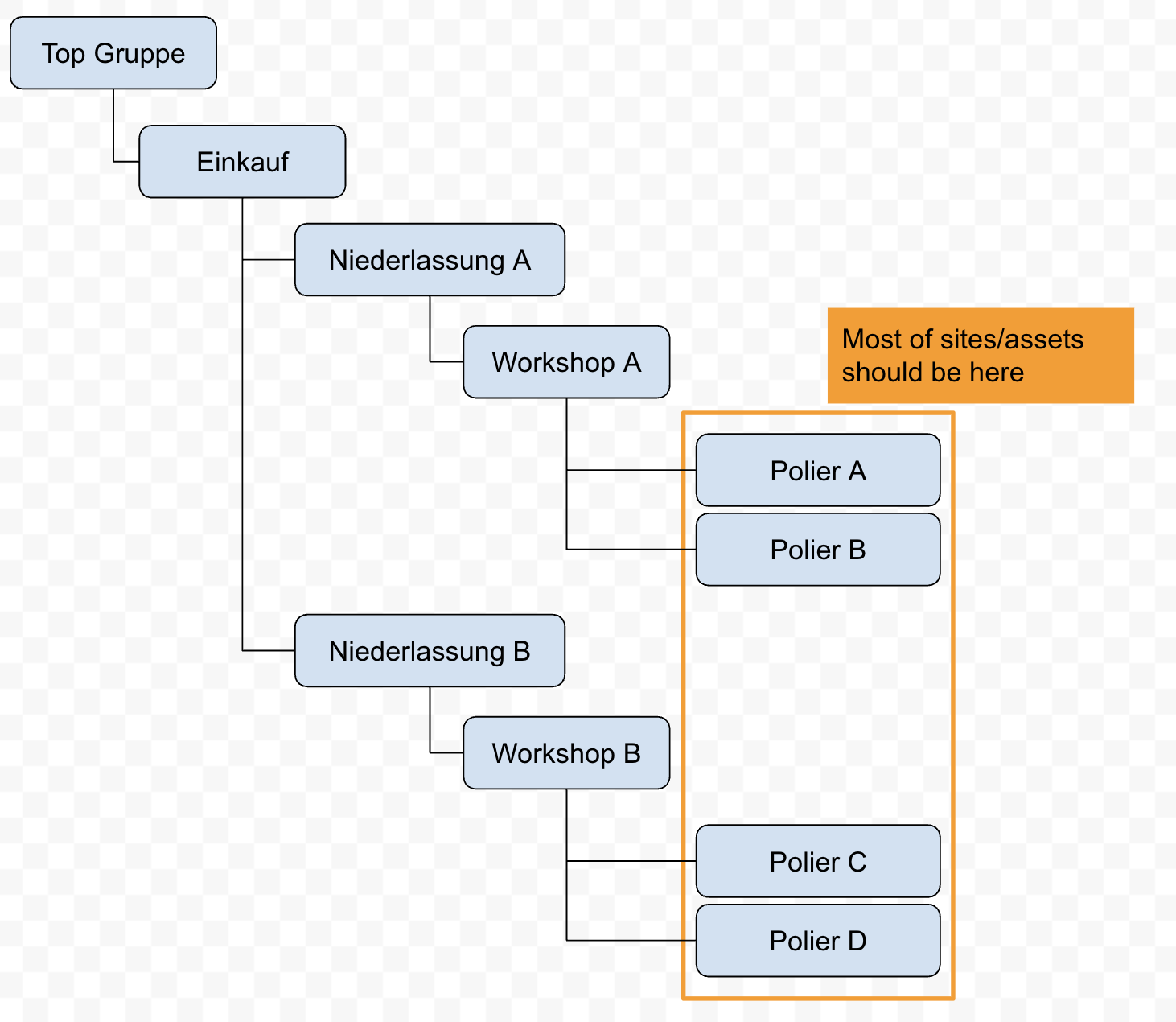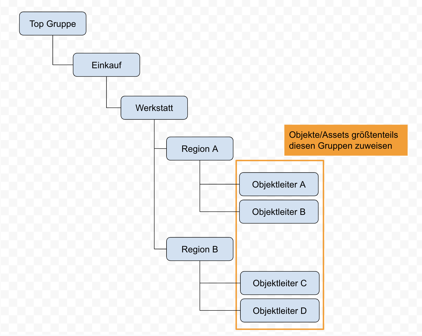 Assets sollten auf der untersten Gruppenebene leben (z.B. Objektleiter oder Polier Gruppe)