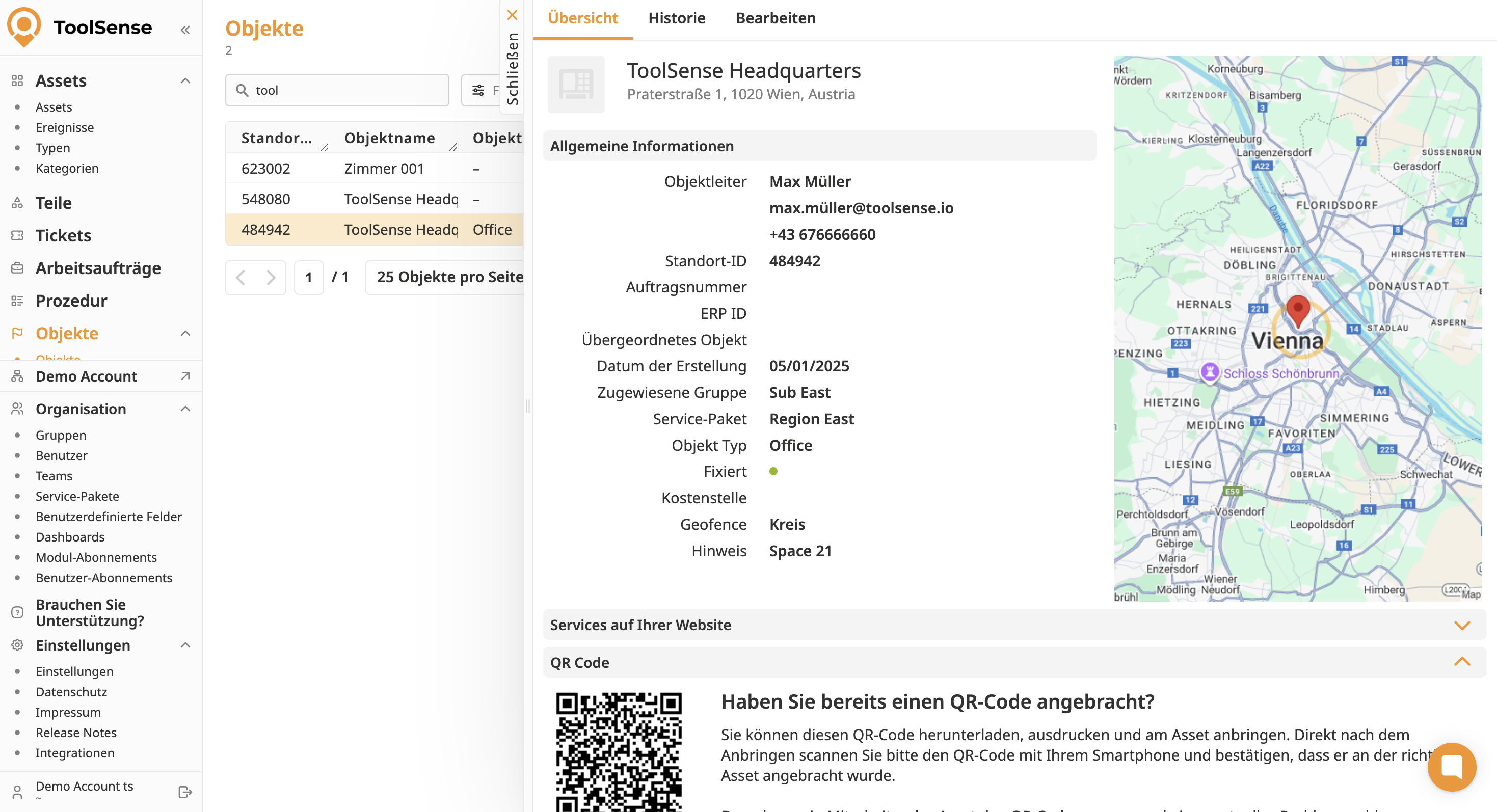 Wie Assets können auch Objekte QR-Codes erhalten.