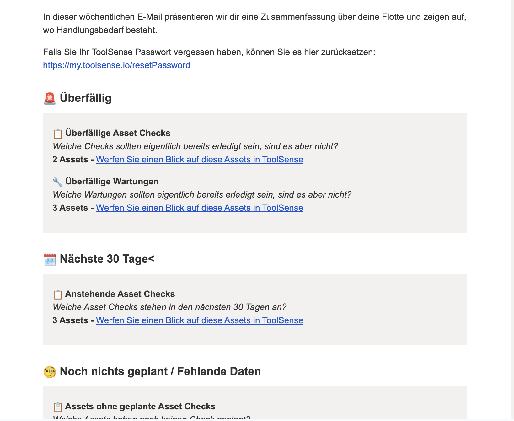 Assets ohne geplante Wartung.
