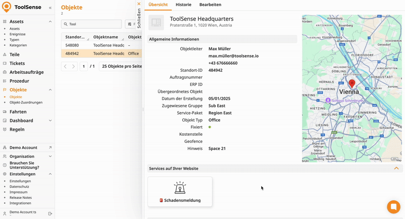 Objektname (erforderlich): Eindeutige Bezeichnung des Objekts (z. B. „Hauptbüro“, „Objekt A“, „LKW 7“).
