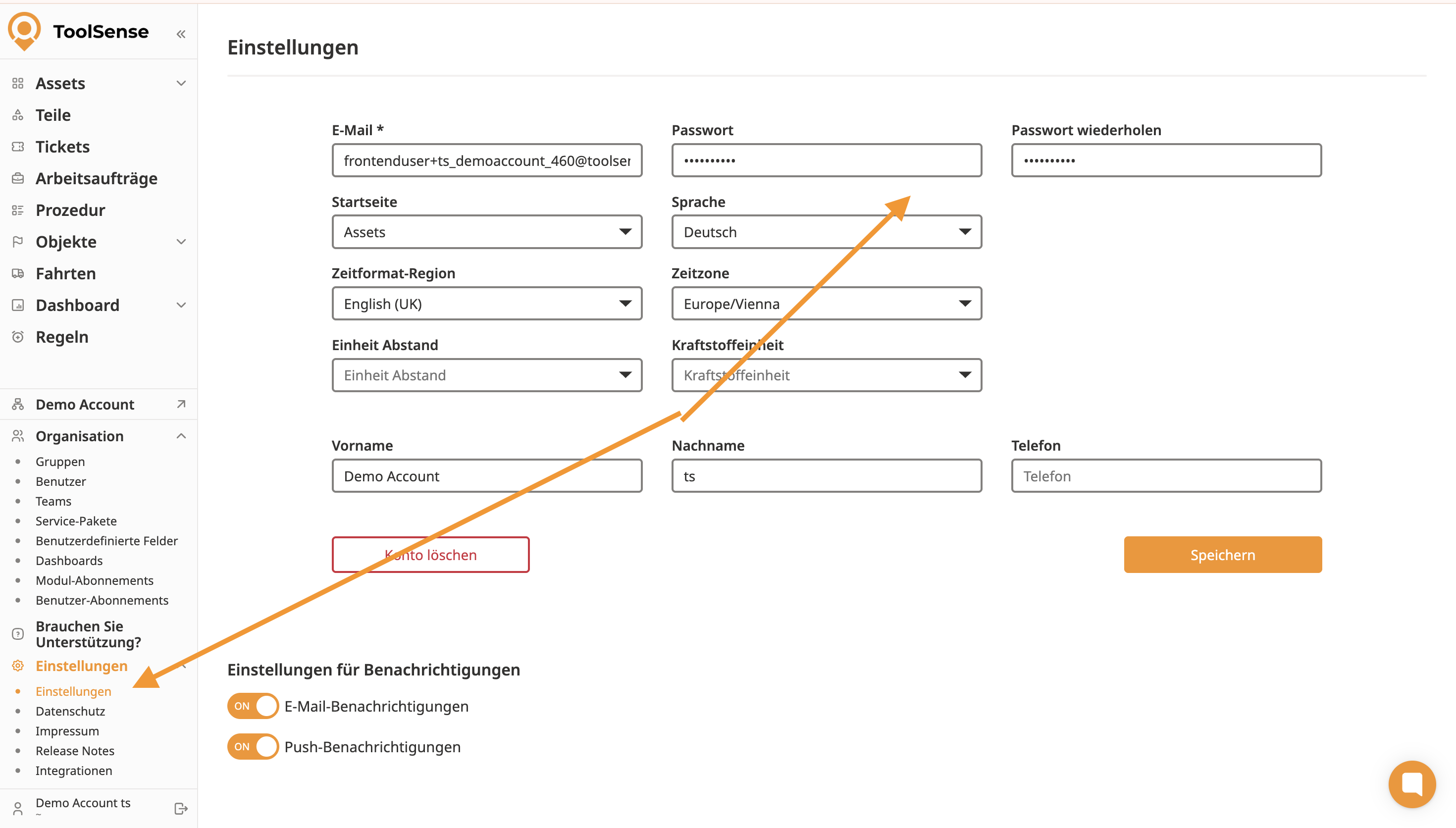 Klicke in der linken Navigationsleiste auf Einstellungen.