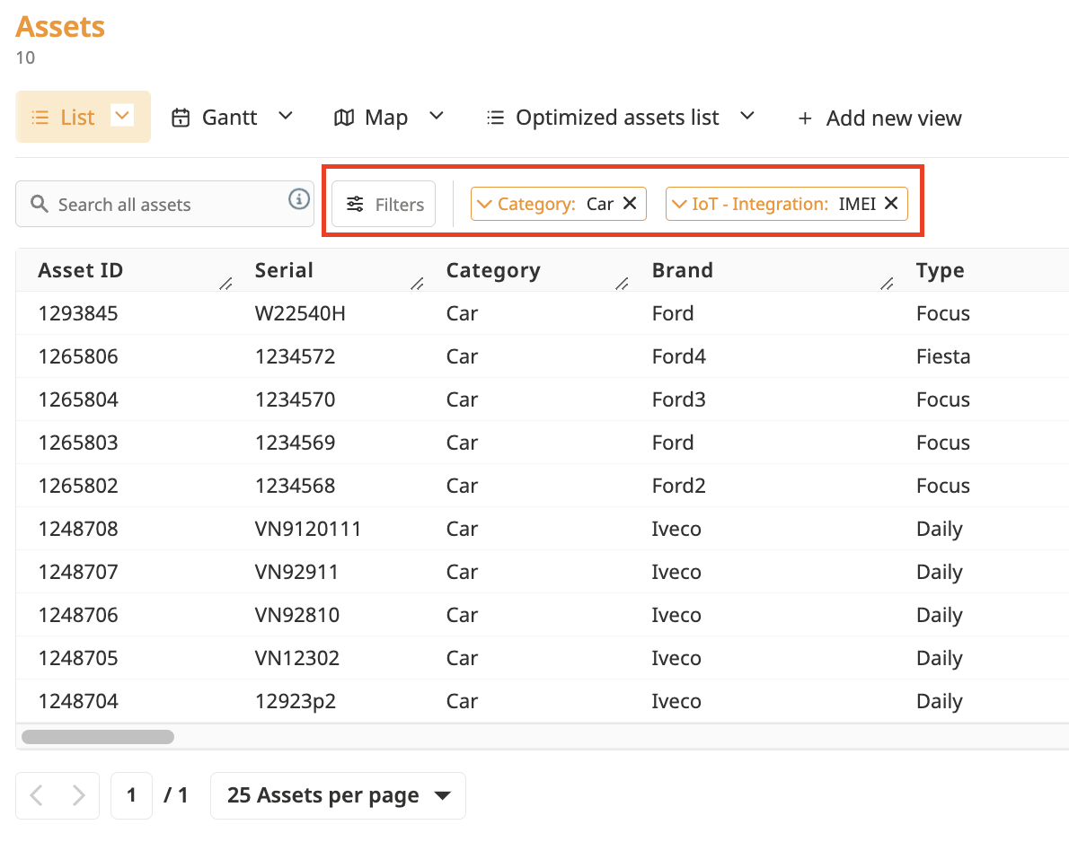 Filtern Sie Ihre Assets