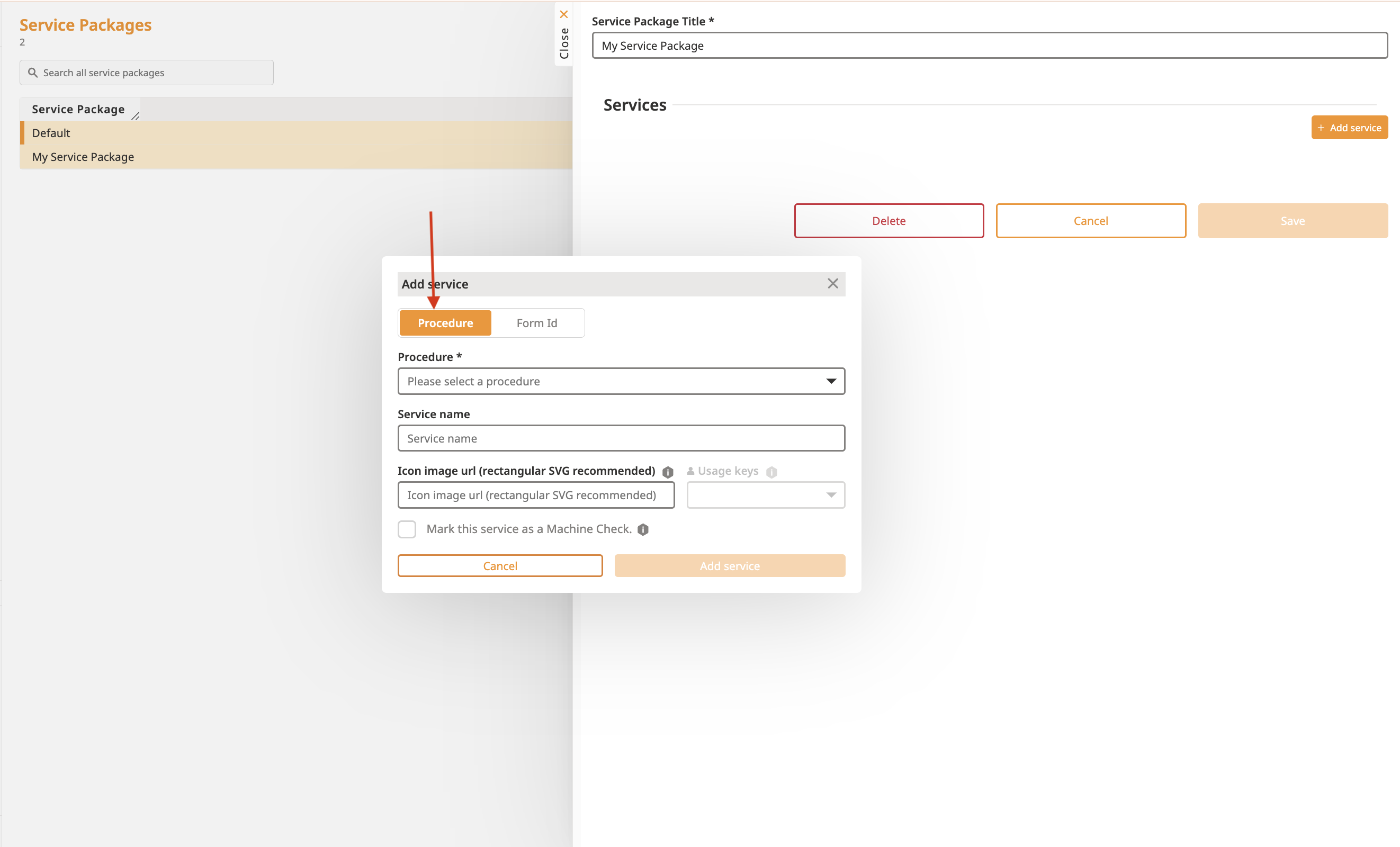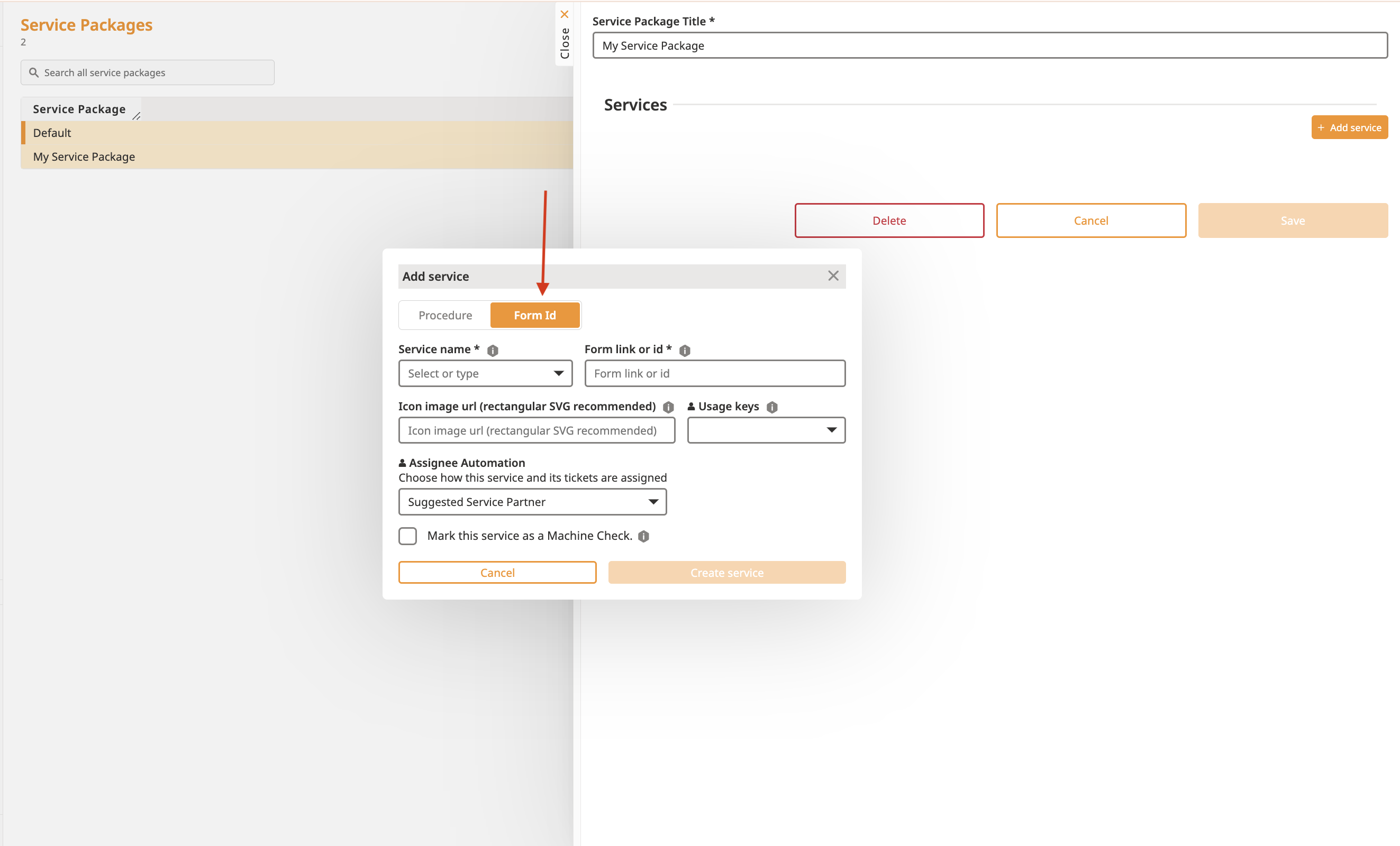 To configure a new Service, you will need a corresponding form. You have two options to create a form: