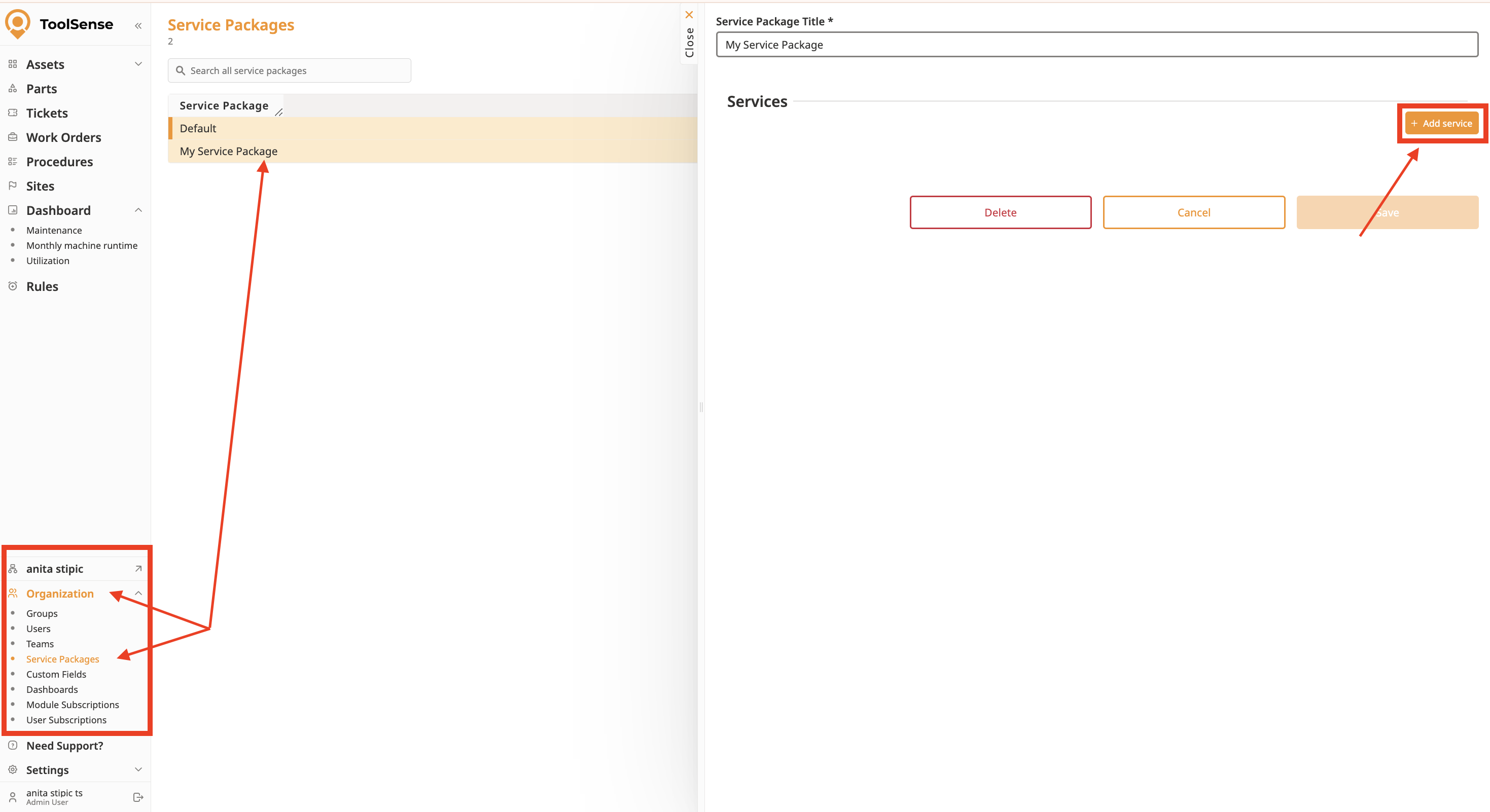 Navigate to your Service Packages.