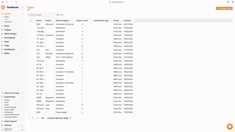 Go to Assets > Asset Types.