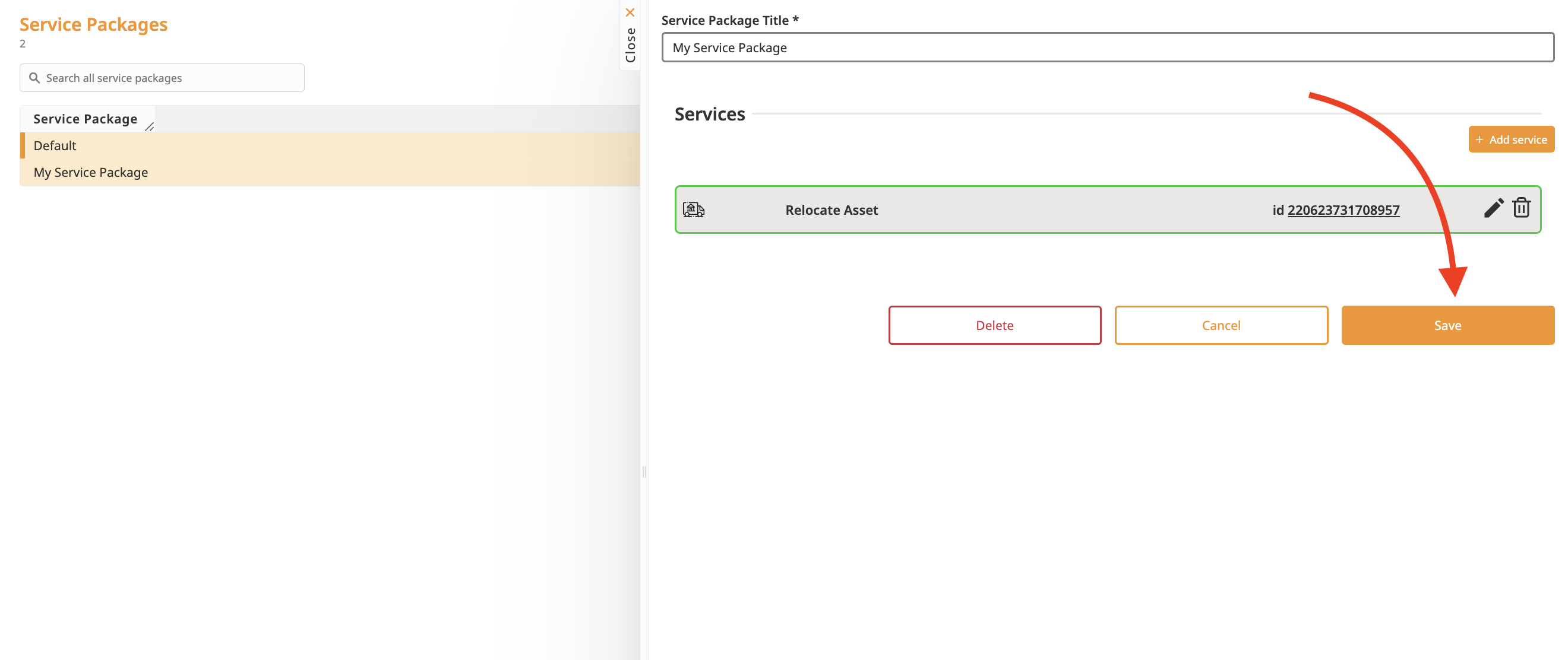 Confirm your changes by clicking Save in the Service Package overview.
