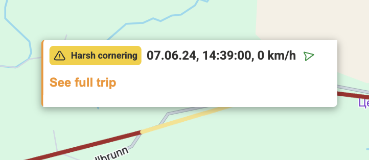 The arrow symbol on the pop-up indicates the direction the vehicle was moving in