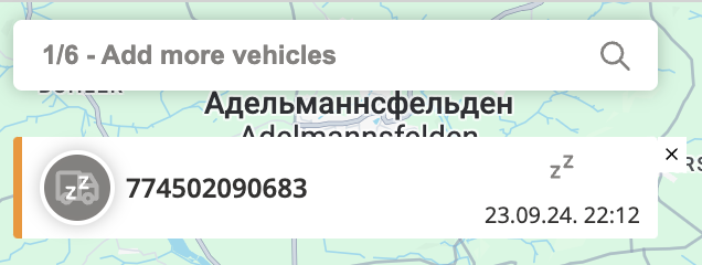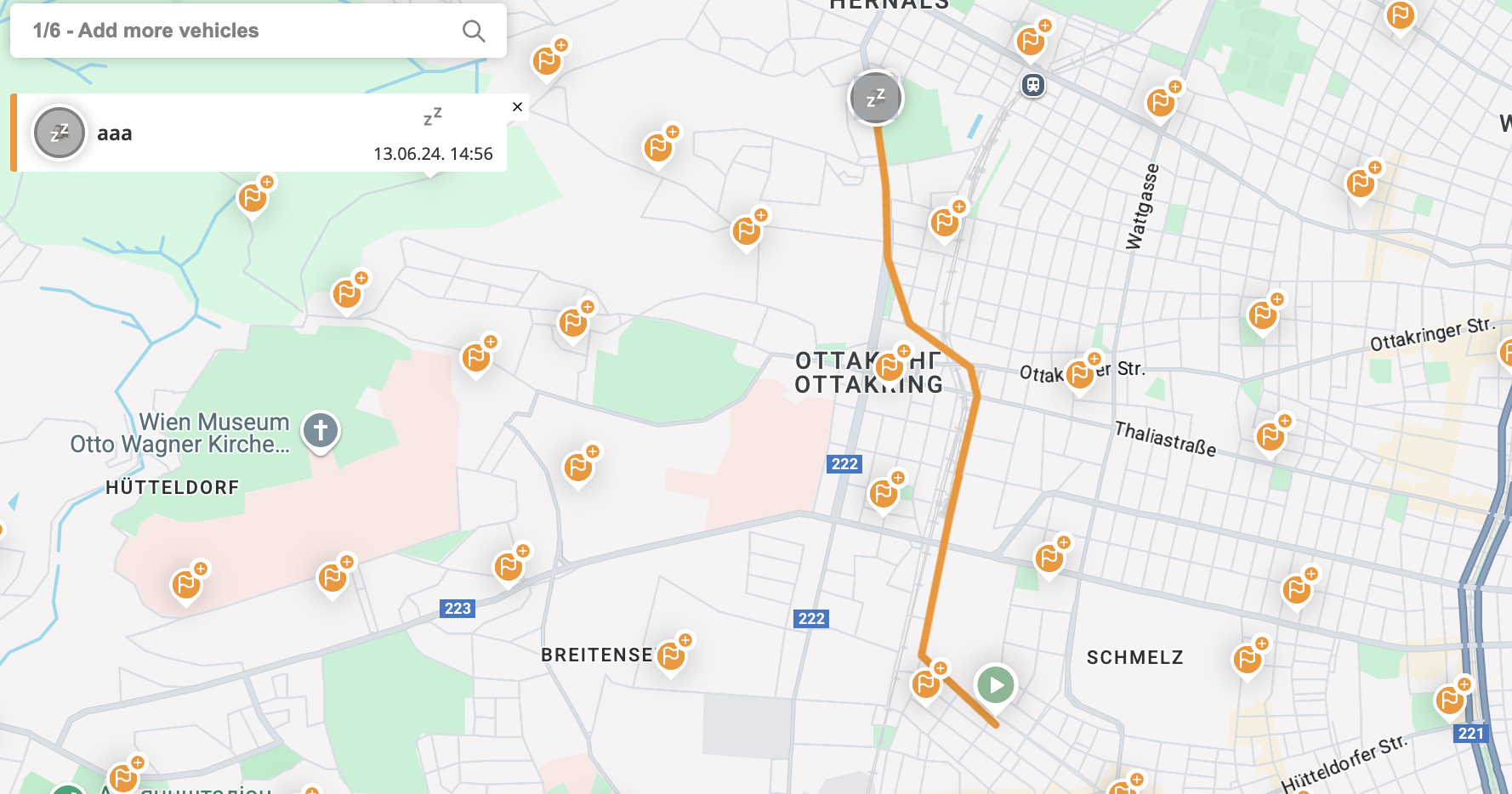 You can select up to six vehicles simultaneously. Every vehicle’s trace will have a different color, displayed on the map and in the selector.
