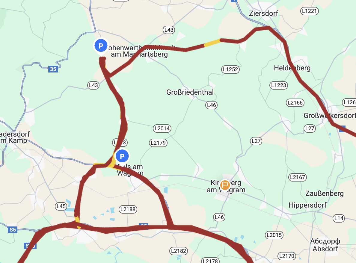 Parked (2 hours to 7 days ago): Displayed with a gray icon with the letter “P”.