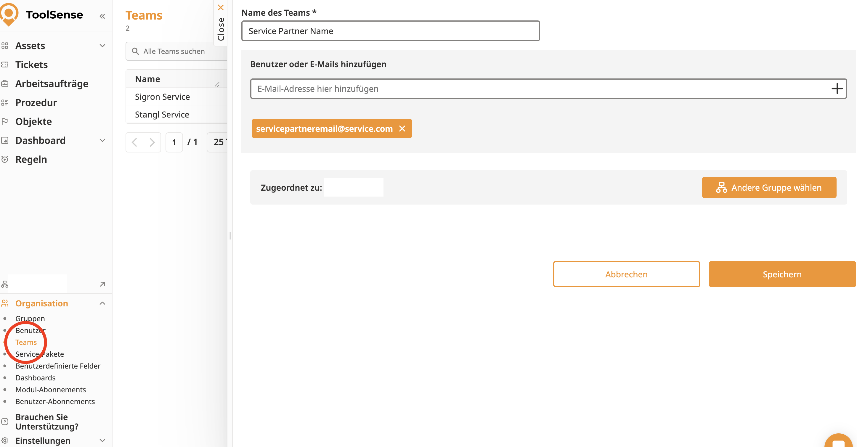 Navigate to the Teams menu in your ToolSense account.