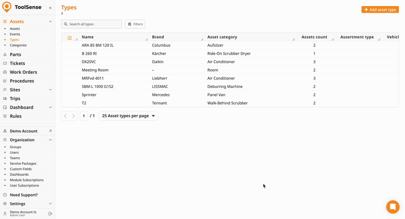 Alternatively, you can assign them to the root group or groups higher in hierarchy and restrict their access to specific asset brands (e.g., only assets of brand Kärcher). To do so, review the brand names associated with the service partner's machines and provide the list of all necessary brand name variations to your CSM. For example, for "Diversey," the list might include: