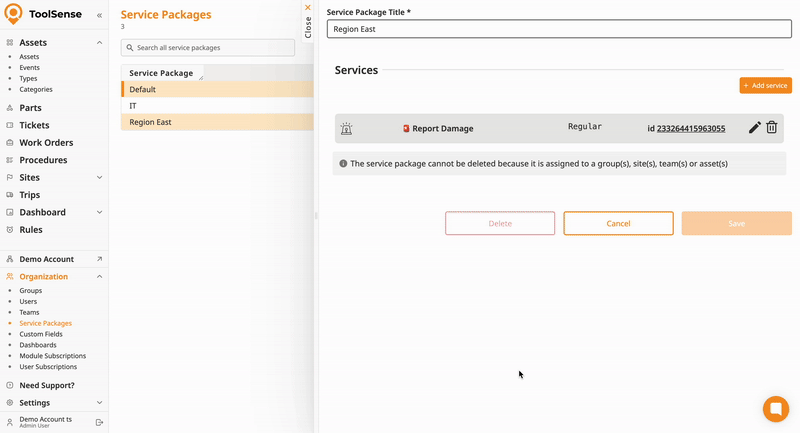 Navigate to your desired asset types and add your service partner in the corresponding input field.
