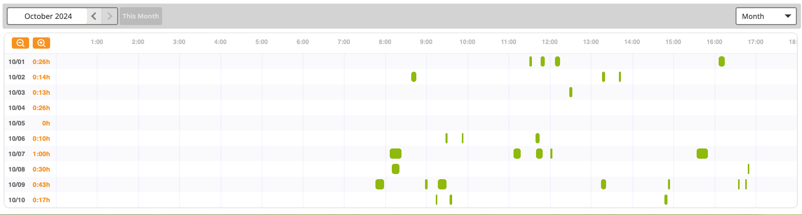 YELLOW-IGNITION: This will indicate the ON time of your machine, showing up as green bars on the platform under the Runtime pane in the Statistics tab.