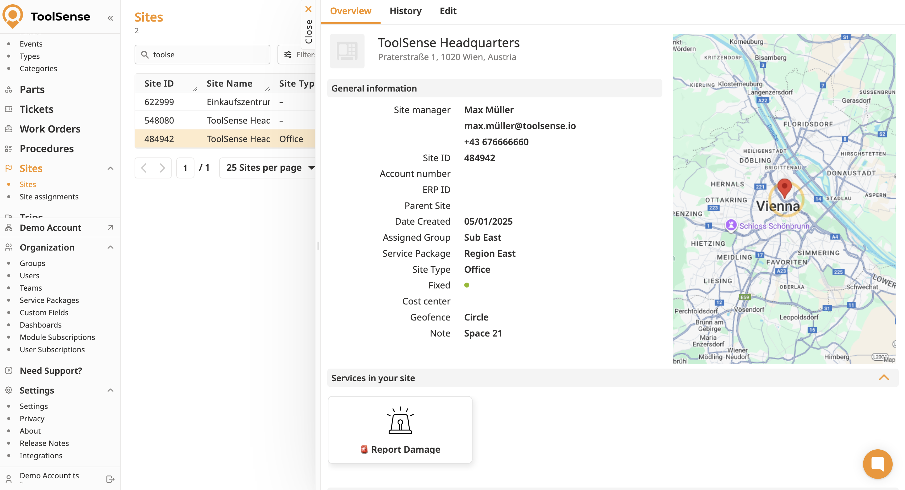 A comprehensive guide to viewing, creating, updating, and deleting site information in ToolSense.
