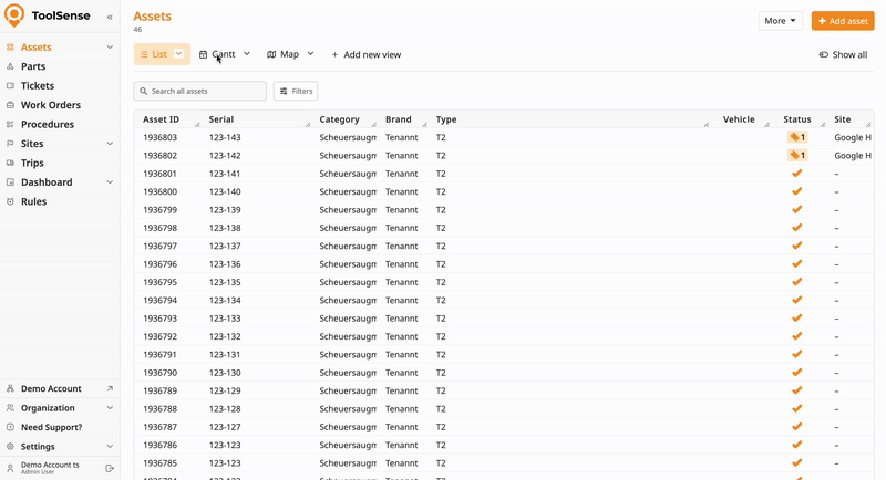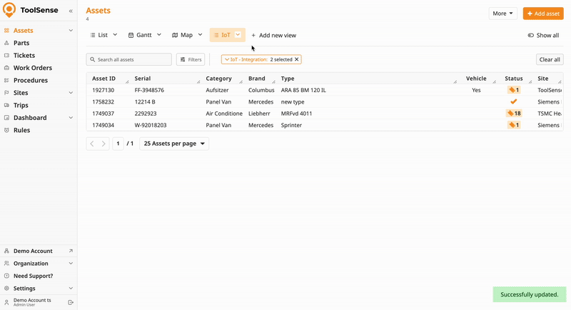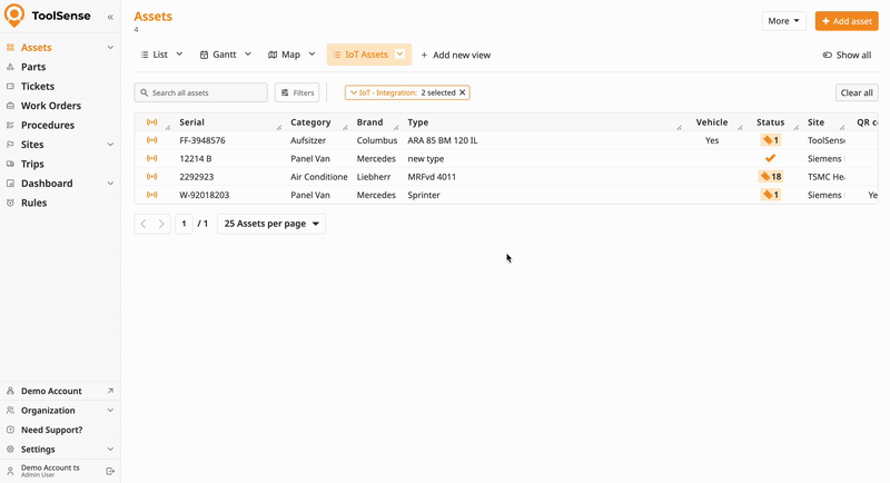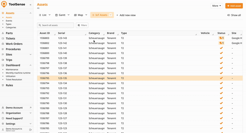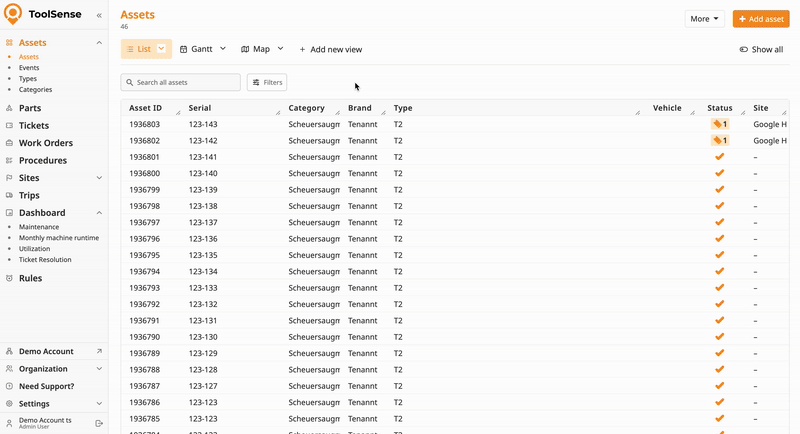 Set one or multiple filters to narrow down your asset list.