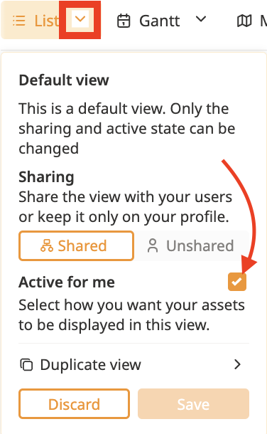 Check the box labeled "Activate for me" to deactivate the view for yourself.