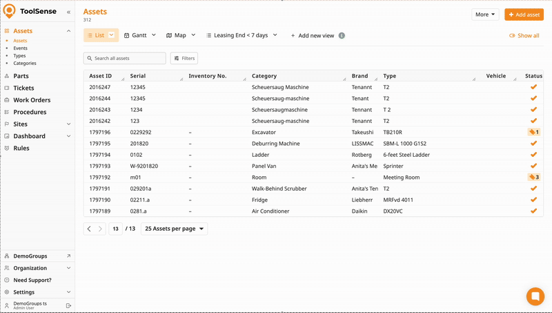 They’re especially useful when working with date and number filters, for example to track expiring leases, upcoming inspections, or cost-intensive assets.