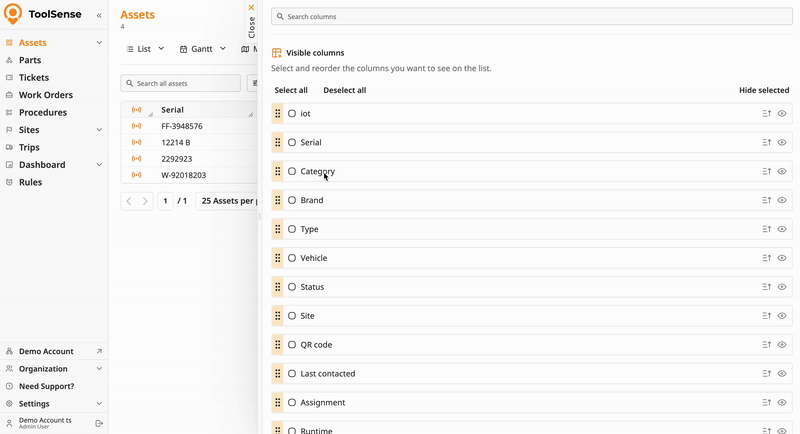 From here, you can rearrange and hide columns based on your needs.