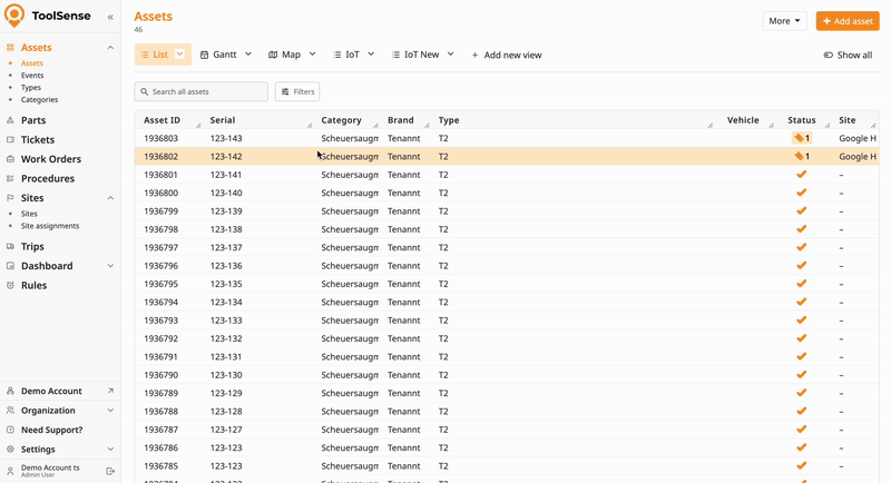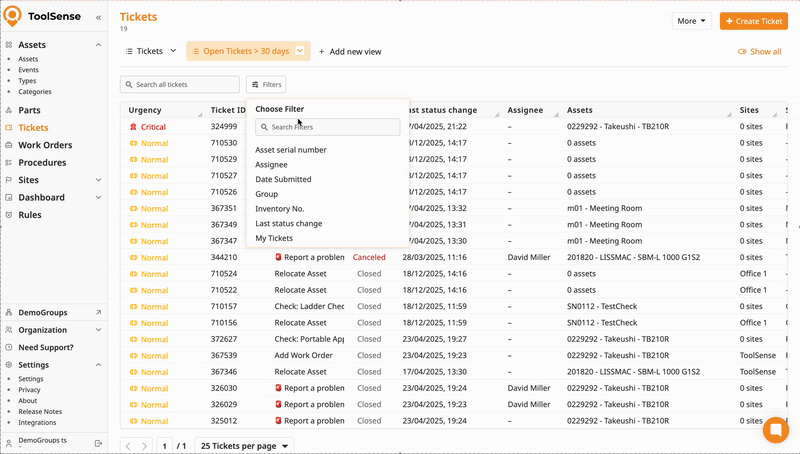 As your data in ToolSense grows - more assets, more tickets, more events - finding the right information quickly becomes essential. Filters help you focus on what’s relevant right now, without scrolling through long lists or exporting data.