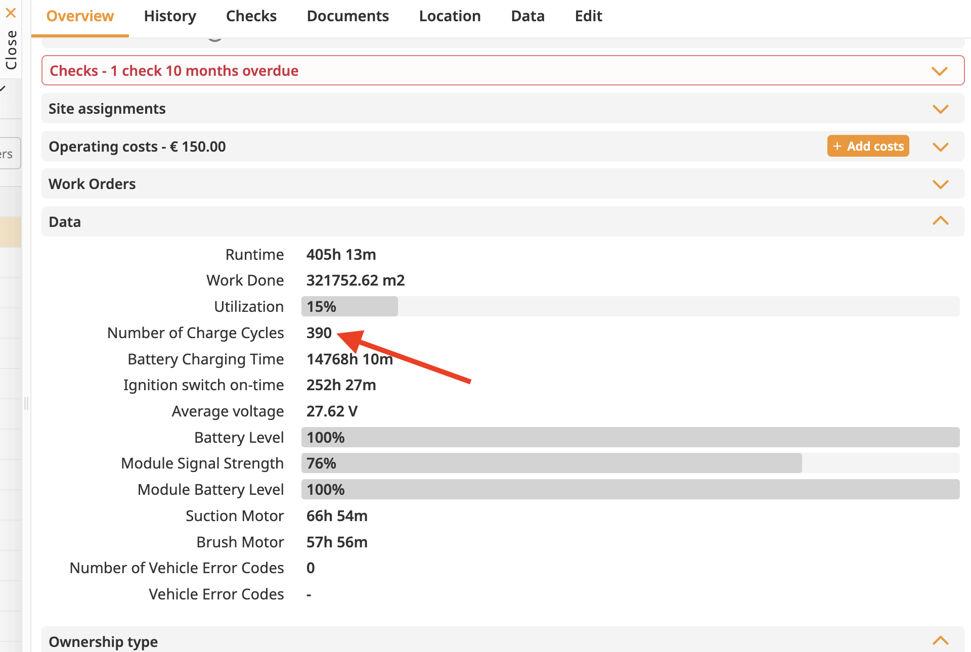 Batteries are one of the most expensive components in machines. Wrong charging behaviour reduces battery lifespan and increases costs. By monitoring charging cycles, you gain insights into how your machines are used and maintained.