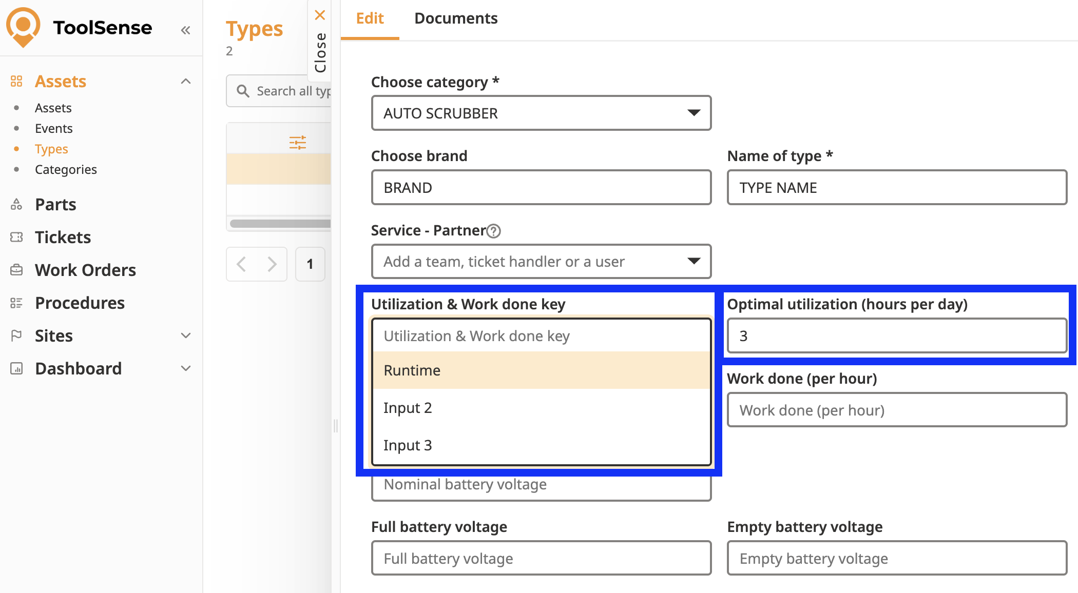 Since these assets have been in ToolSense, their total usage hours are lower than the hours they were originally acquired for.