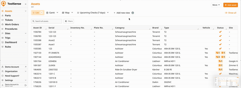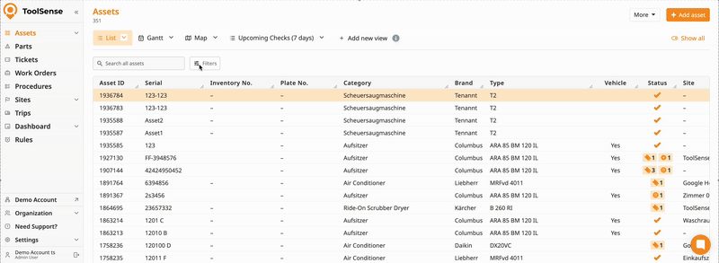 Filter your dataOpen any list (e.g. Assets, Tickets, or Events) and apply one or more filters to narrow down the results.
