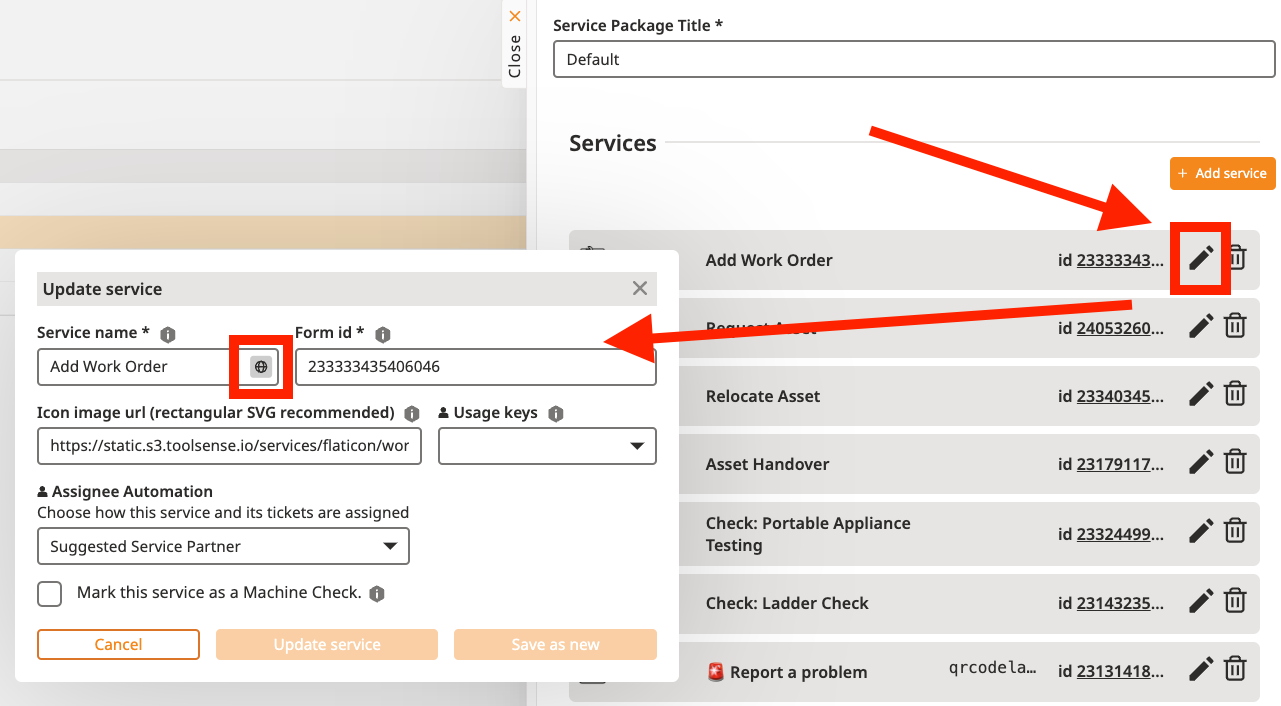 All Services are added in the Service Packages settings on the bottom-left corner of your ToolSense account.