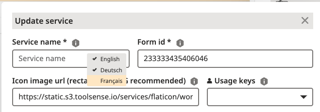 If this Dropdown doesn't appear, it means that this form hasn't been translated yet. Then, you need to ask ToolSense if a specific language translation should be added to the form.