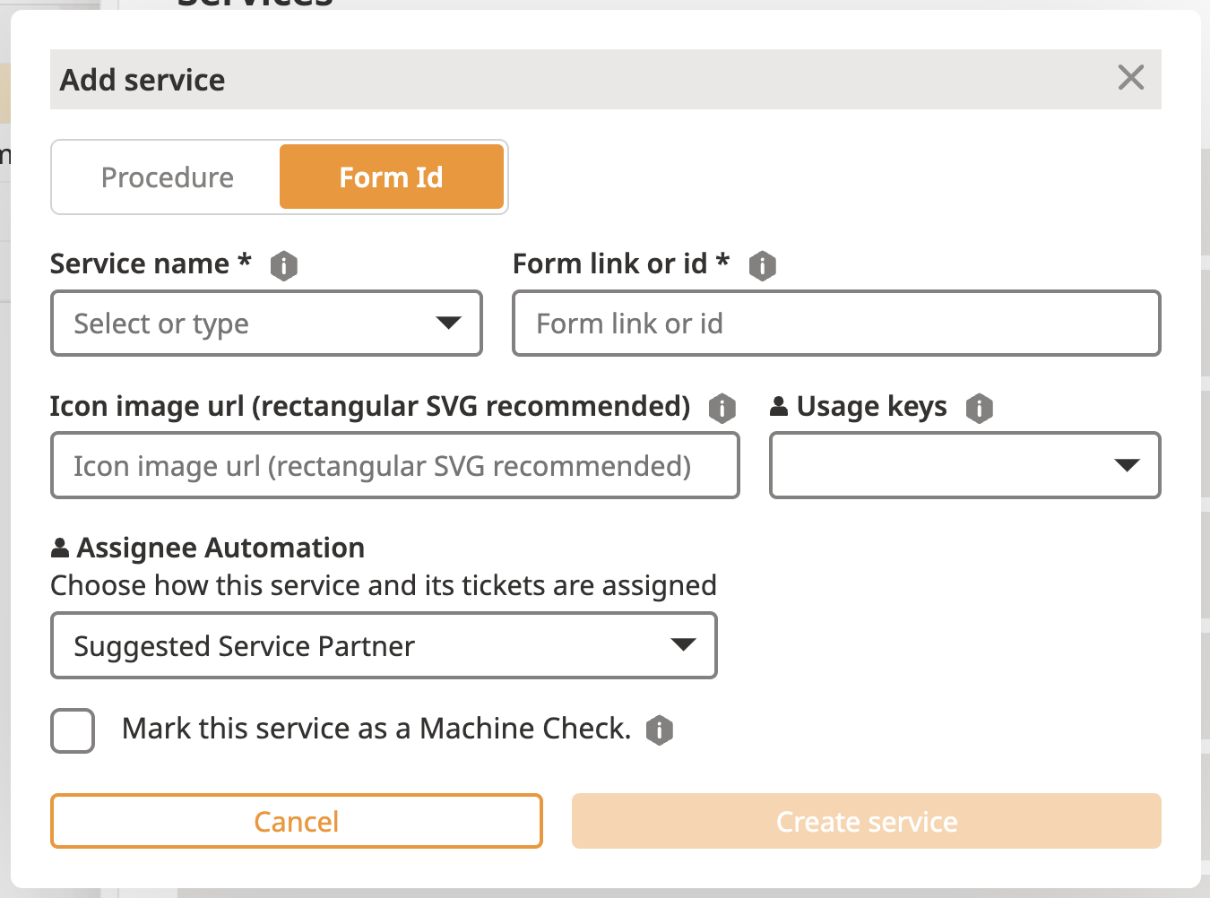 Name the Service (Should be understandable by the operators who will use it to record runtime / mileage...)