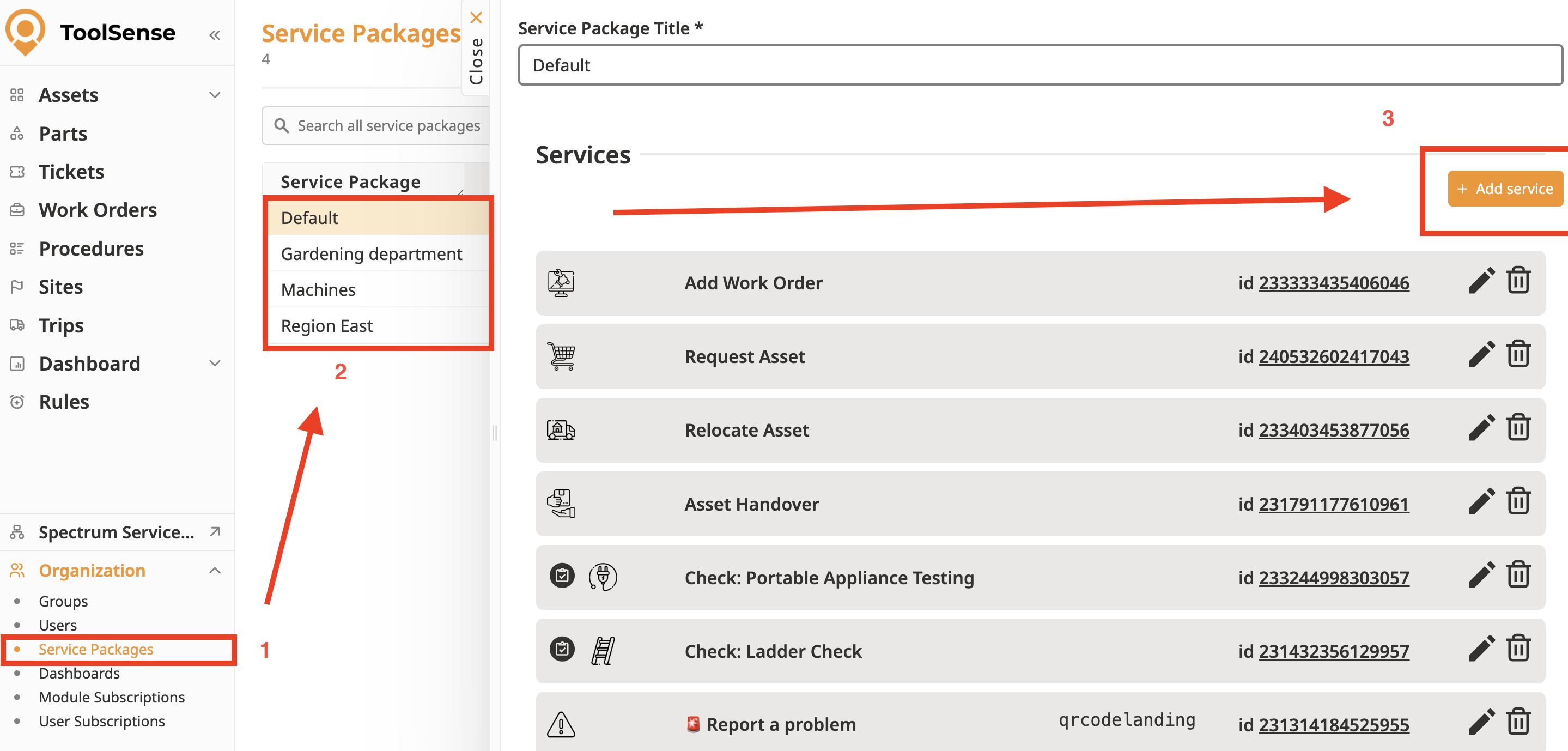 Select the Service Package for which you would like to add the feature