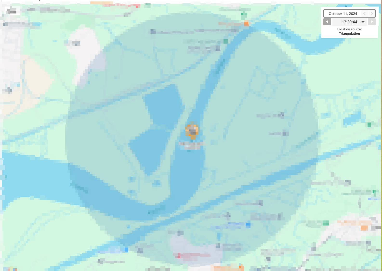 We need to blur out the exact location, but it's clearly visible that the location is in the middle of a river, or at least somewhere around this green area, which is obviously not realistic in case of a cleaning machine.