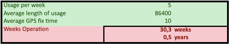 Here are a couple of scenarios with a battery lifetime estimation for our recommended battery.